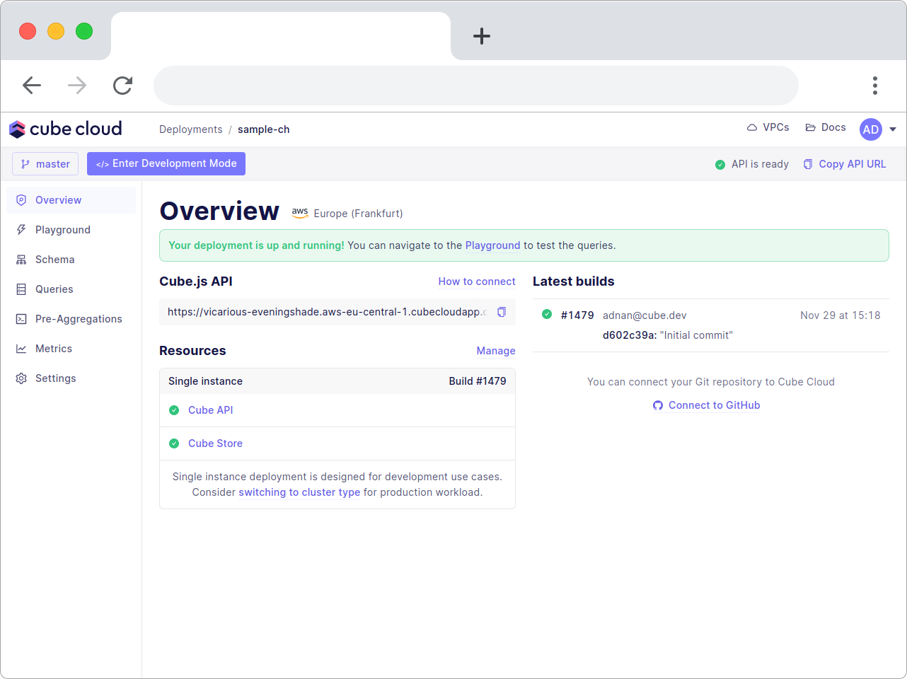 I hope this walkthrough helped you set up your own ClickHouse instance with Altinity.Cloud and Cube Cloud.